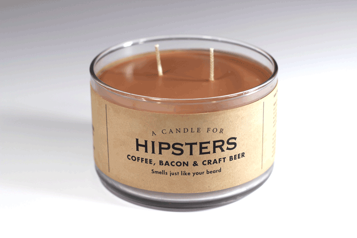 Ah, hipsters. An almost completely passé concept at this point. But if we made a normcore soap, would it have to dress like Jerry Seinfeld? We swore off mom jeans back in the 80s. Our Candle for Hipsters is not for the hipster poser, btw. The rich scents of coffee, bacon and craft beer will waft from the lit soy candle and make you ... well, hungry is our guess.